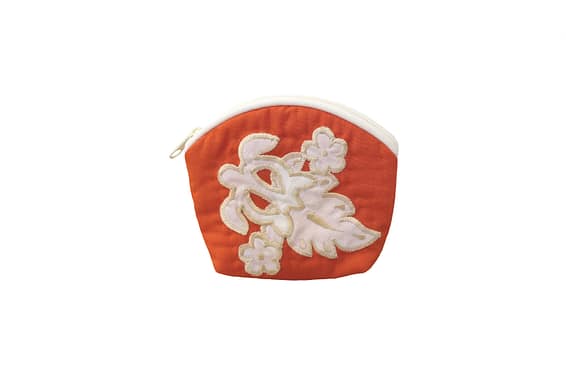Quilted Coin Pouch – Orange/White