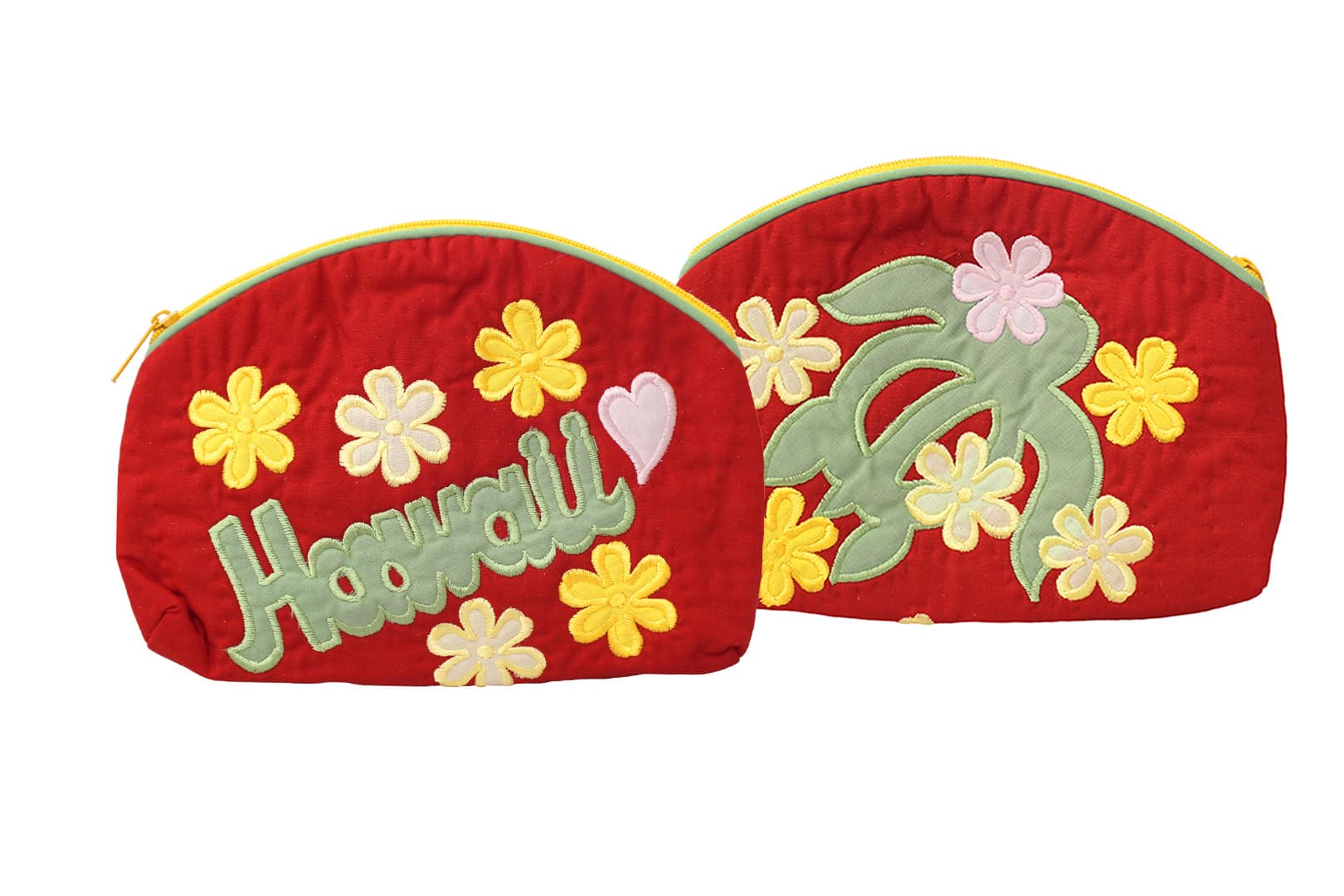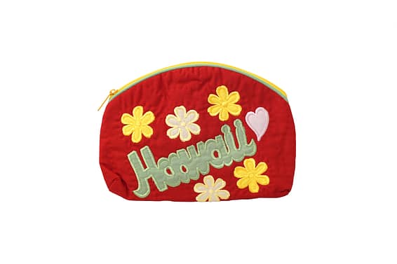 - Hawaiian Quilted Cosmetic Pouch with Zipper Closure.