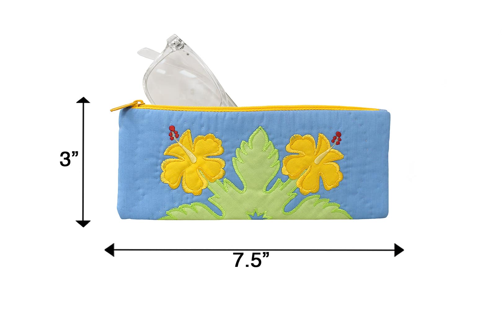 - Hawaiian Quilted Eyeglass Pouch with Zipper Closure.