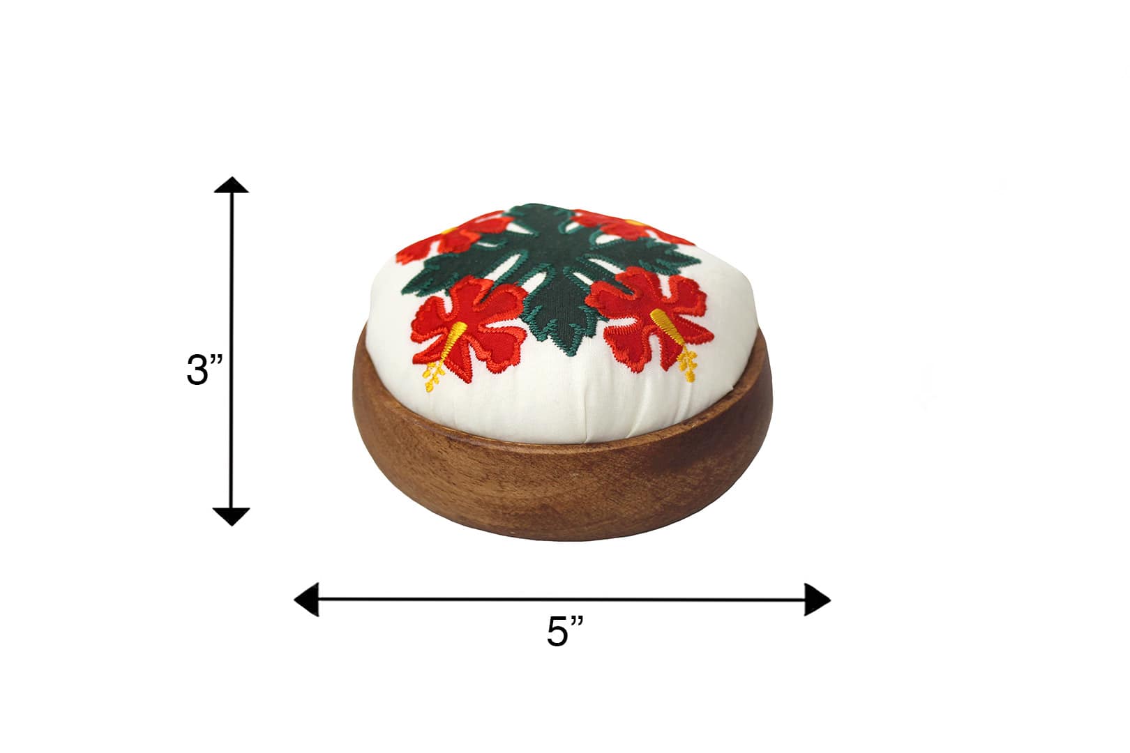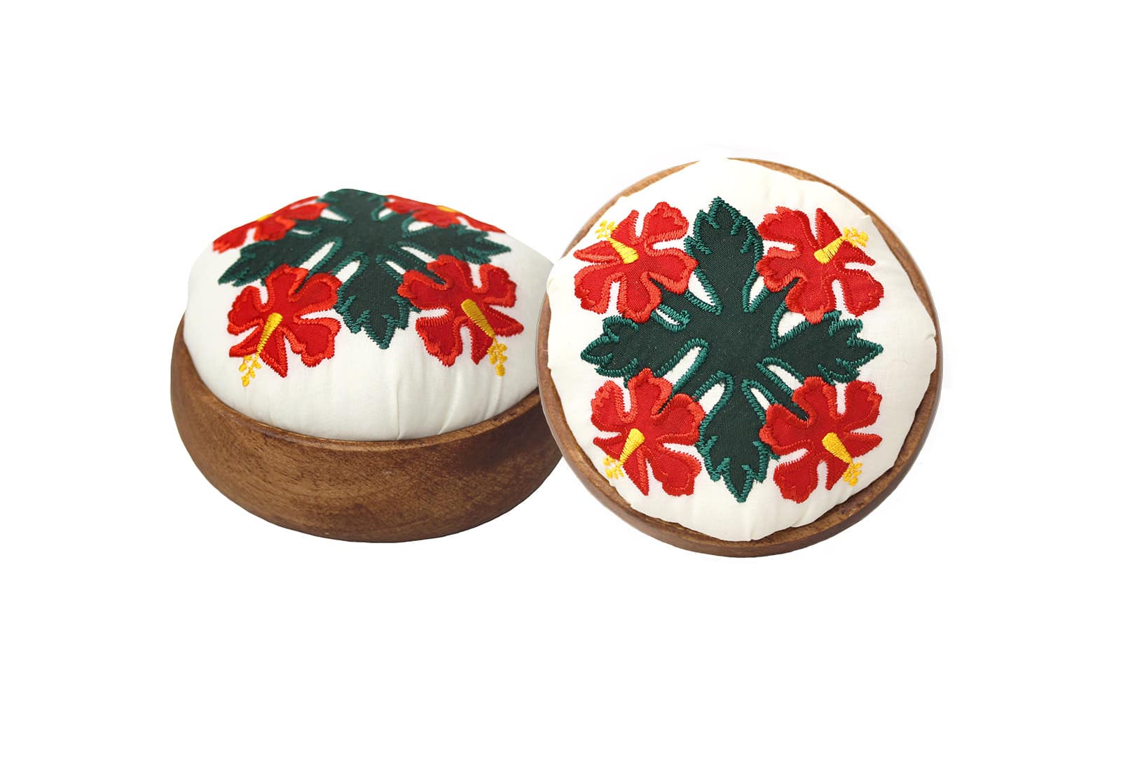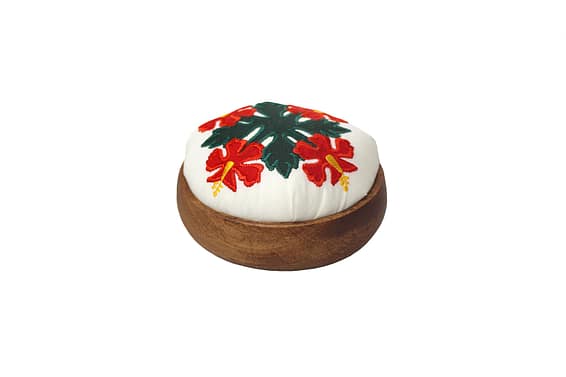 - Hawaiian Quilted Fabric Pin Cushion with Monkeypod Wood Case